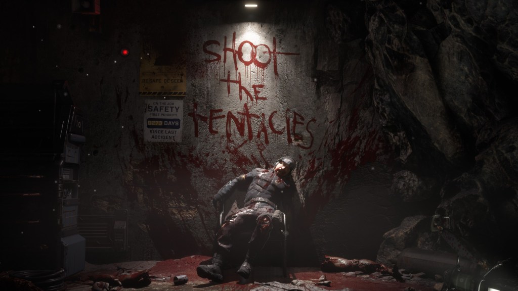 But okay, enough talking about the bad stuff. Let’s talk about the good stuff. The visuals. The art. The music. The Callisto Protocol is probably the best-looking horror game to date. Not only in terms of graphical fidelity, but also in terms of the art design. Every single location in the game has something for you to look at. A pile of corpses, a mangled body, a fleshy wall that is blocking your path, a bloody floor with red lights surrounding it, there is always a setting that tells you a brutal story. The team has done an incredible job designing these environments. Not only in horror games, but in games in general, The Callisto Protocol is a game I won’t so easily forget about when it comes to graphics.